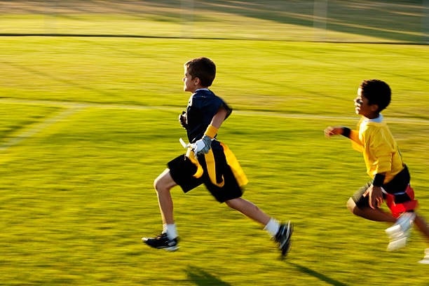 Our flag football camps are fun and will help your child learn about sportsmanship and working with others.